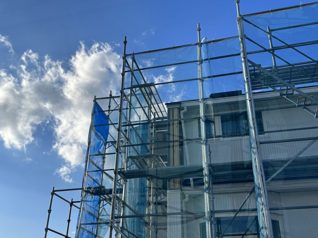 その後お客様と一緒に外壁全体を⾒て、塗装に不備がないか、気になる点はないか確認をします。